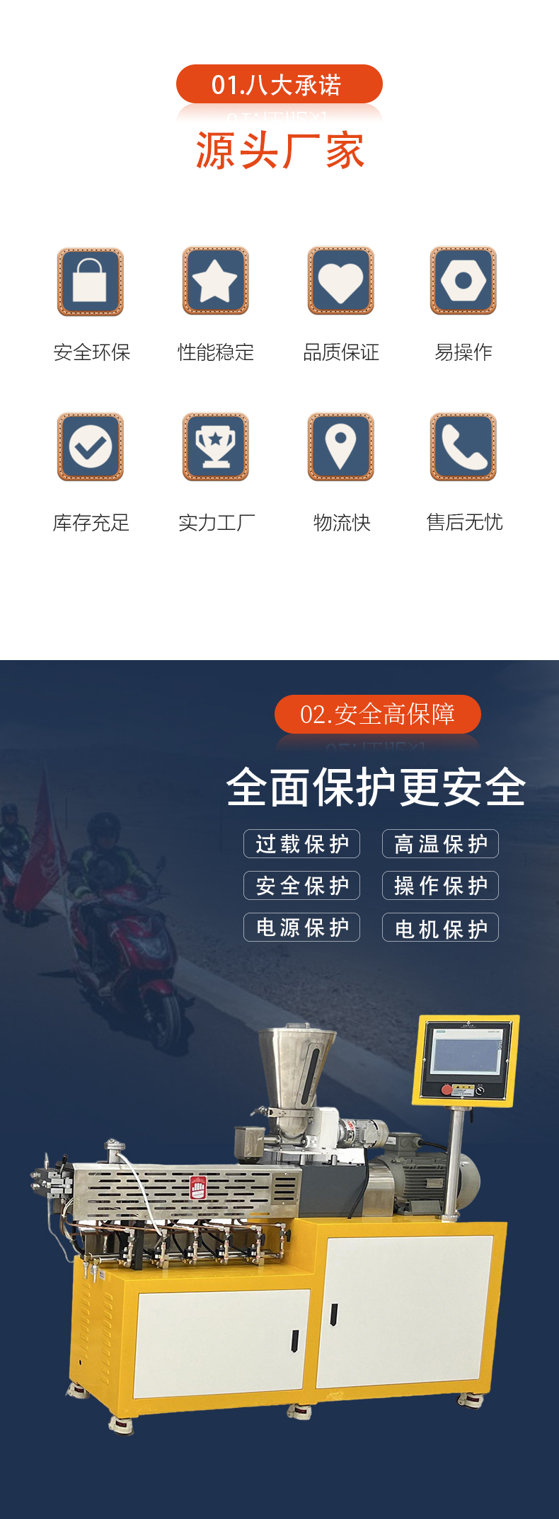 工作原理:此機(jī):物流從料斗里放入經(jīng)過擠出裝置的塑化和擠出變?yōu)榱餮訝顟B(tài),再從主機(jī)經(jīng)模頭出來,擠出機(jī)組的用途不同其選配用的輔助設(shè)備也不盡相同。