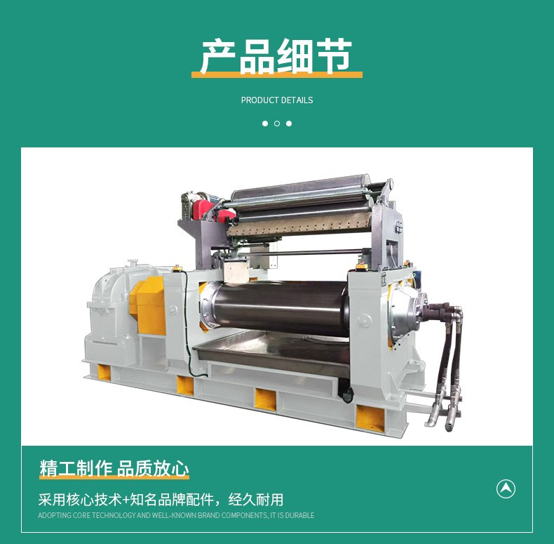 主要用于橡膠的塑煉、混煉、熱煉、壓片等工藝過程。通過兩個相向旋轉的輥筒對橡膠進行擠壓、剪切和混合,以達到塑化和均勻混合的效果,從而提高橡膠制品的品質。