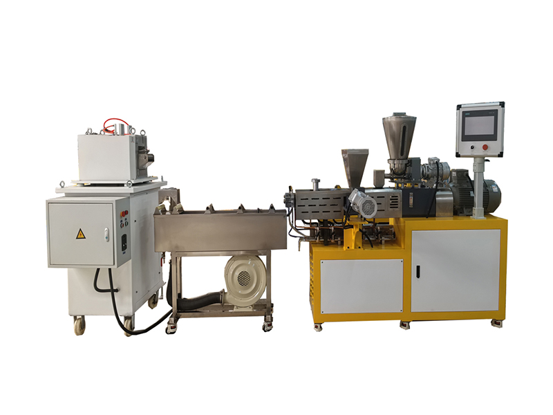 簡介:螺桿的連續(xù)轉(zhuǎn)動反復強迫物料轉(zhuǎn)向,有助于物料的均勻混合、塑化。在雙螺桿擠出機的加熱、混合,剪切、塑化、壓實排氣作用下,物料塑化成均勻的熔體,并在雙螺桿的擠壓下,通過機頭擠出圓形的條狀料,經(jīng)冷卻水槽水冷后,再經(jīng)切粒機切粒,得到塑膠粒料。本實驗采用水冷拉條冷切法。