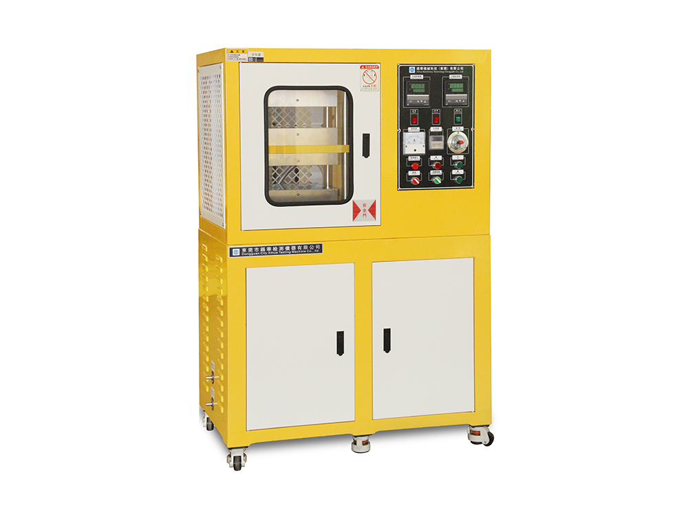 其主要功能是將原料放于鑄模內(nèi),夾于本機電熱平板間,加以壓力及溫度,以供試驗,做為工廠大量生產(chǎn)配料之依據(jù).